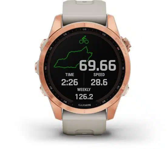 Een echte luxe sporthorloge voor dames is de Garmin Fenix 7S Solar. Dit model staat niet alleen elegant om je pols, het heeft ook de meeste uitgebreide functies. Bij het volgen van je sportactiviteiten meet dit horloge naast basis informatie zoals afstand en tijd ook je hartslag, de temperatuur, hoeveel hoogtemeters je maakt en wat het zuurstofgehalte in je bloed is. Ook verdwaal je met dit sporthorloge voor dames nooit meer. Je download er namelijk topo kaarten op, waardoor je makkelijk kunt navigeren.