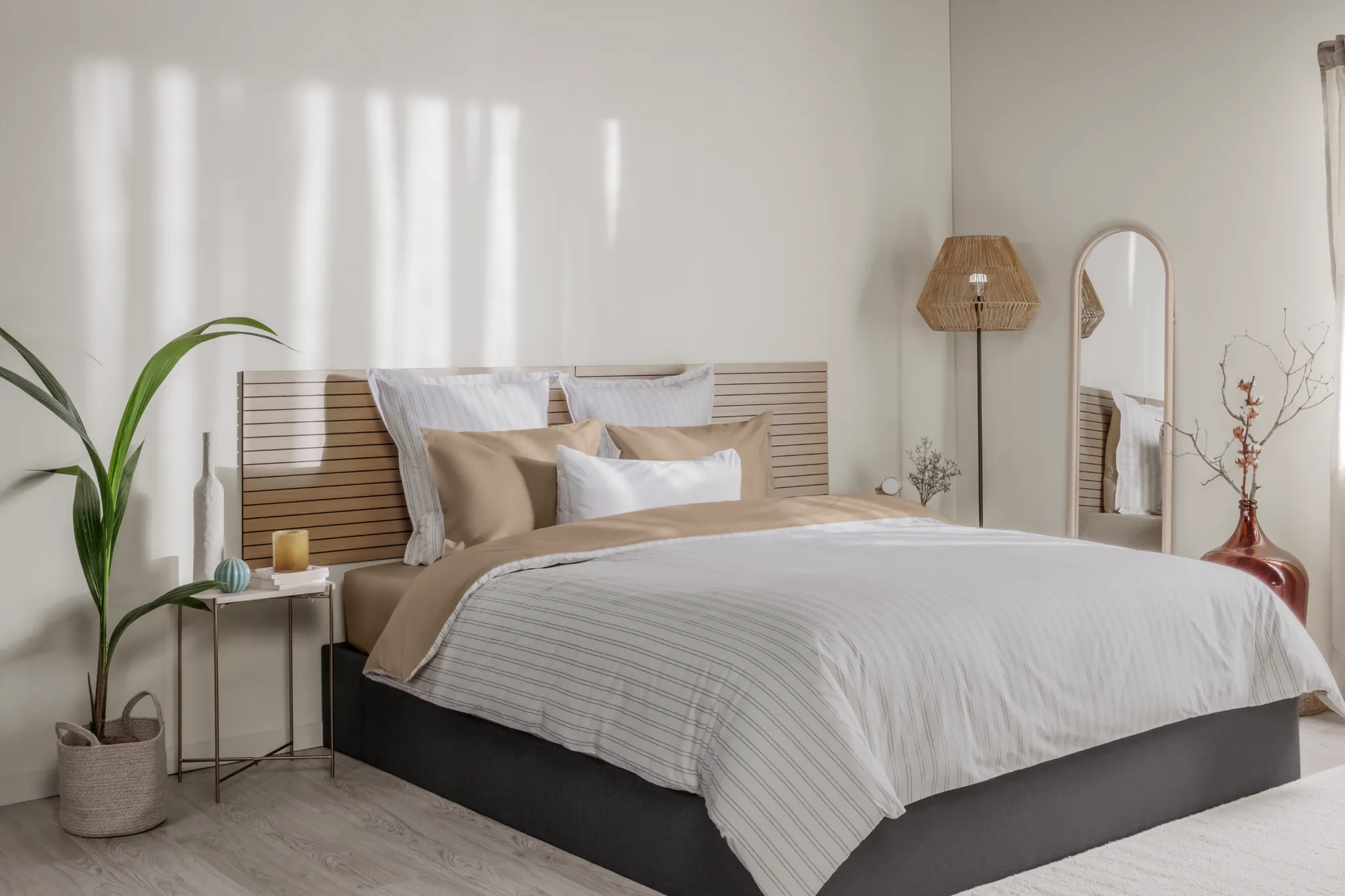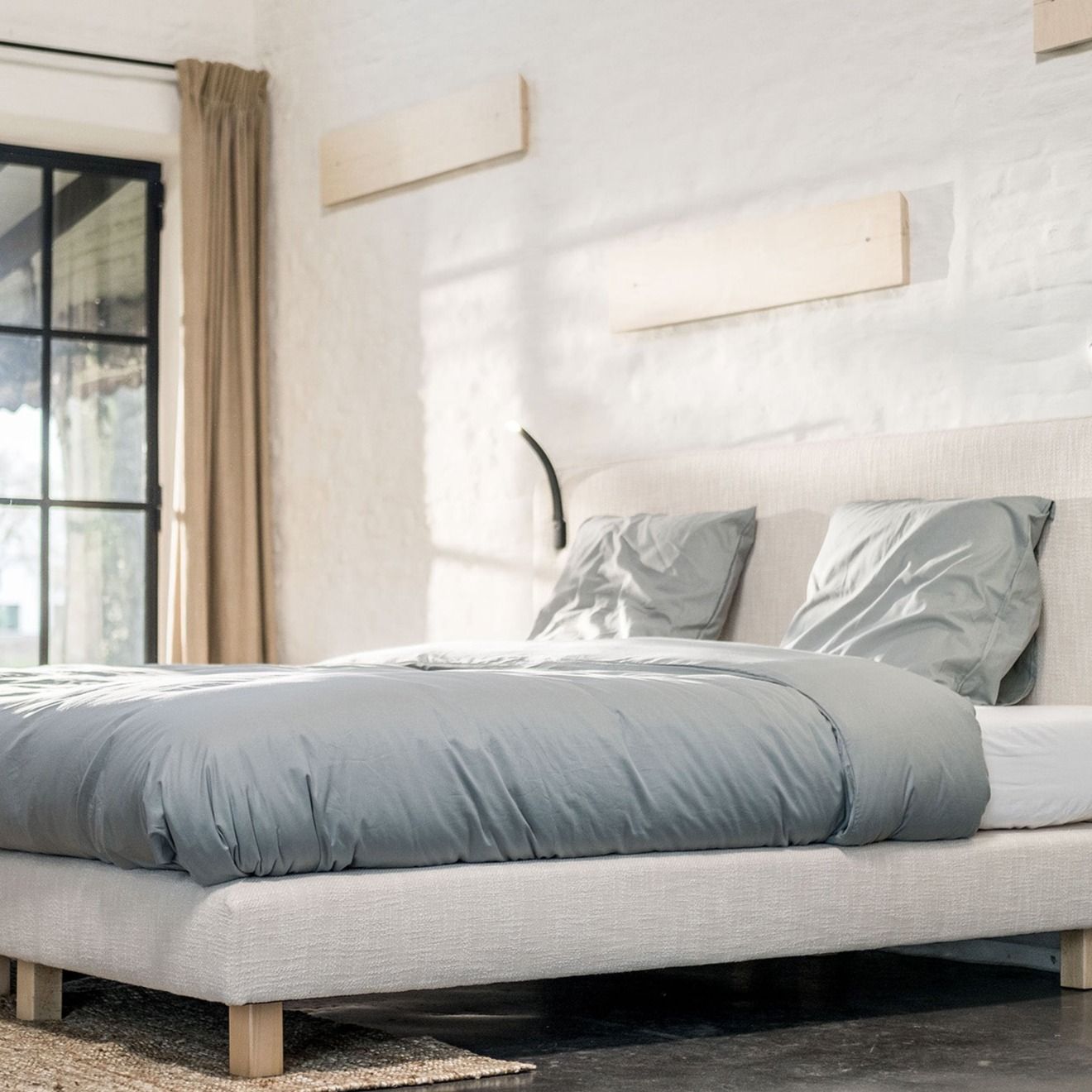 Het beddengoed is gemaakt van hoogwaardig Egyptisch katoen met een ragfijne satijnbinding. We vonden het materiaal zacht aanvoelen en waren onder de indruk van de subtiele glans. Daarnaast vonden we dat het katoen een goede vochtopname en warmteregulatie had. Je kiest uit vijf maten en drie effen kleuren: wit, grijs en blauw.