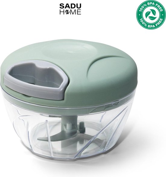 Wil je af en toe een hakmolen gebruiken, maar hier niet teveel geld aan kwijt zijn? Dan is de Sadu Kitchen Groentesnijder een goed idee. Ideaal wanneer je wat tijd wilt besparen, want hiermee hak je groenten in een mum van tijd erg fijn. Deze machine is niet alleen geschikt voor groenten, maar ook voor vlees, fruit en kruiden. Daarnaast kan hij ook goed gebruikt worden als uiensnijder of voor het malen van noten. Door aan het koord te trekken, gaan de RVS messen voor je aan het werk. Het is hierbij wel belangrijk dat je het koord niet loslaat, maar vasthoudt op het moment dat hij terugtrekt.