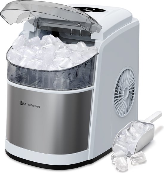 Met de KitchenWell ijsblokjesmaker heb je nooit meer last van lege ijsblokjesvormen in de vriezer, want binnen enkele minuten zijn de eerste blokjes al klaar voor gebruik. Dit krachtige apparaat produceert tot wel 12 kilo ijs per 24 uur en biedt de keuze uit verschillende formaten ijsblokjes, ideaal voor cocktails, frisdrank of een ijskoffie. Dankzij het compacte formaat en het eenvoudige bedieningspaneel is deze machine een onmisbare toevoeging voor elk feestje of een warme zomerdag op het terras.