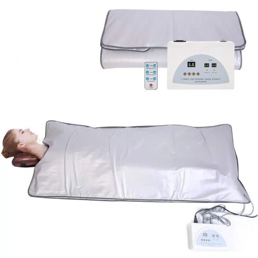 De Anpad infrarood sauna deken is een deken met 2 warmtezones. Je kunt beide zones apart instellen tussen 35 en 75 graden Celsius. Dit is een lange deken en de buitenkant is gemaakt van hoogwaardig PU-materiaal. De binnenkant is gemaakt van waterdicht PVC. Je bedient de deken met een afstandsbediening.