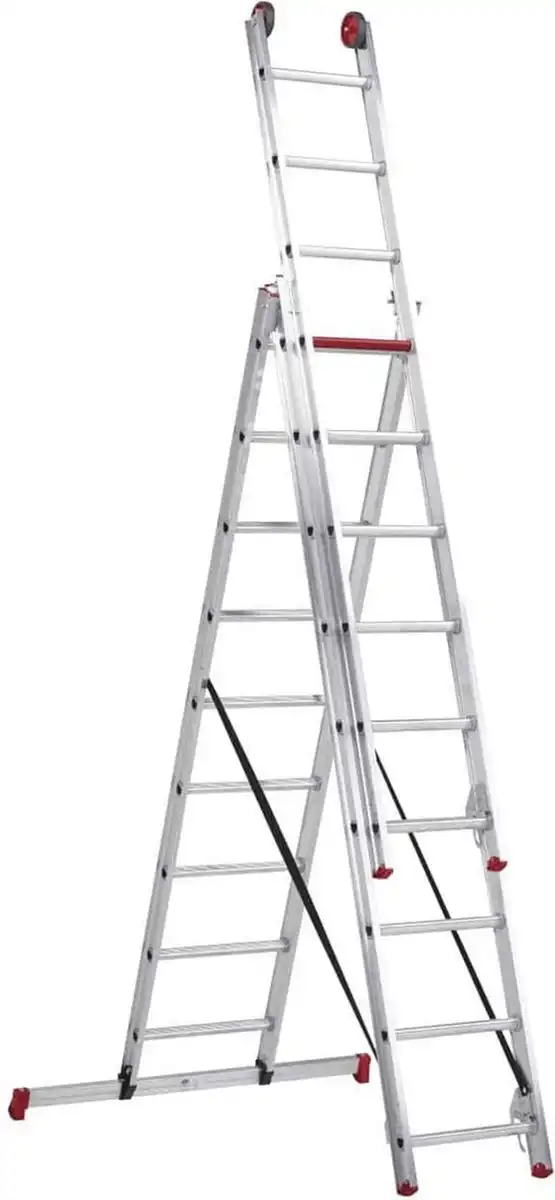 Deze reformladder, bekend om zijn flexibiliteit, kan in een A-stand worden geplaatst voor vrijstaand gebruik of volledig worden uitgeschoven om hogere punten te bereiken. Deze ladder heeft een maximale werkhoogte van 6.75 meter, waardoor je op grotere hoogten te werk kunt gaan.