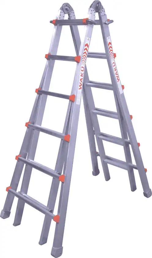 De Waku Ladders Multifunctionele Ladder is een professionele vouwladder die je eenvoudig in verschillende standen kunt gebruiken. Of je nu een rechte ladder, een dubbel oploopbare trap, of een trap met variërende hoogtes aan elke kant nodig hebt. Deze ladder heeft het allemaal.
