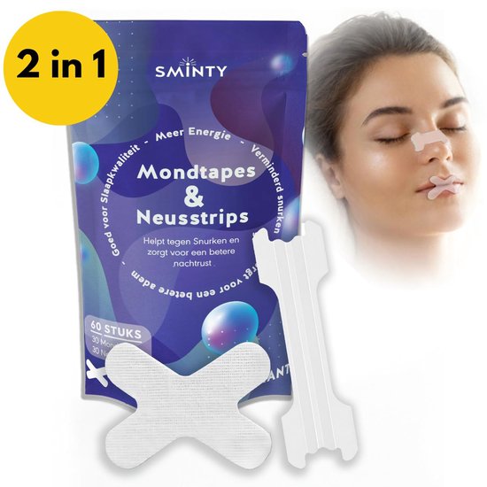 Deze set van Sminty bestaat uit mondtape en neusstrips, waardoor je effectief snurken voorkomt. Deze set bevat 60 stuks en heeft een transparante look, waardoor je ze discreet draagt. We vonden de strips eenvoudig aan te brengen en te verwijderen.