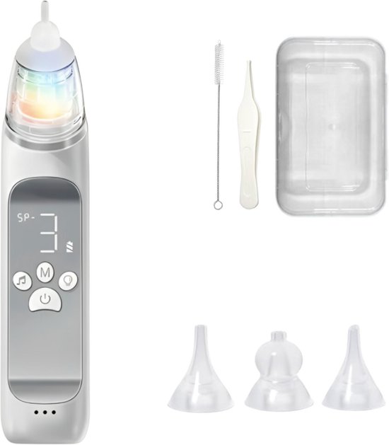 Voor baby’s raden we deze elektrische neusreiniger van Vulpes Goods aan. De batterij van dit compacte model gaat 120 minuten mee en het heeft een sterke zuigkracht. De kinderliedjes hebben een kalmerende werking, waardoor baby’s dit niet eng vinden.