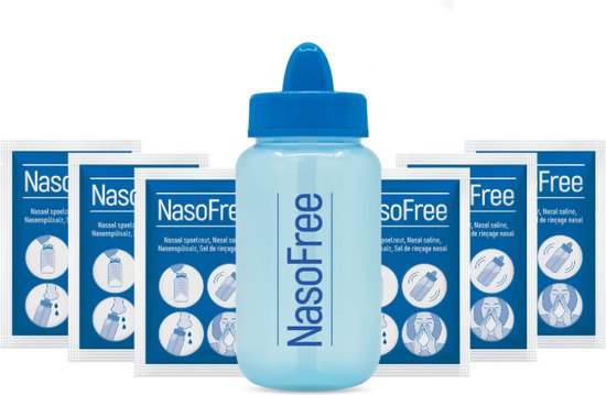Dit startset van NasoFree bestaat uit een neusdouche en dertig zakjes met nasaal spoelzout met xylitol, wat helpt bij neusbijholteontstekingen. Dit model is makkelijk te reinigen en heeft een inhoud van 250 milliliter.