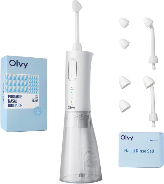 Deze neusdouche van Olvy werkt elektrisch, waardoor het effectief reinigt en je kiest uit drie spoelmodi. Dit model wordt geleverd met vijftig zakjes spoelzout en zes opzetstukken voor volwassenen en kinderen. We vonden het 360 graden draaiende mondstuk gebruiksvriendelijk.