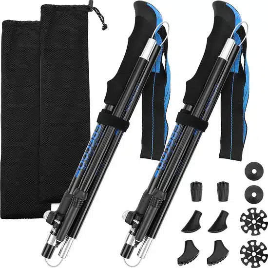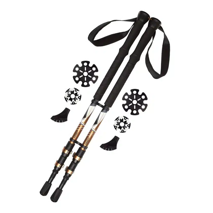 Deze wandelstokken zijn extra stevig en wendbaar waardoor je ze in verschillende situaties kan gebruiken, zoals een wandeltocht door de modder of in de bergen. De punt van de stok is daarnaast gemaakt van stevig materiaal en ze worden geleverd met verschillende voetjes. Hierdoor kan je de stokken op elke ondergrond gebruiken en aanpassen naar je eigen voorkeur.