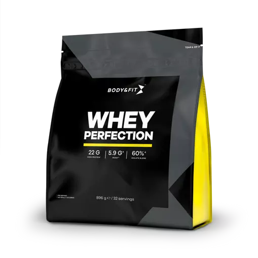 Het Body & Fit Whey Perfection proteïnepoeder heeft een goede prijs-kwaliteitverhouding. Per shake krijg je 22 gram eiwitten binnen, bestaande uit een blend van eiwitbronnen. Het bevat negen essentiële aminozuren, inclusief BCAA’s.