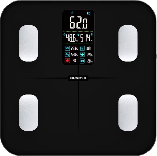 Deze Auronic personenweegschaal is de ábsolute winnaar in de slimme weegschalen top 10 van Bol.com. En dat is niet zonder reden. Deze alleskunner (met 15 verschillende metingen) meet alles wat je maar wil weten. Bijvoorbeeld BMI, botmassa, buikvet, caloriebehoefte in rust en activatie, spiermassa en vetpercentage, en natuurlijk meet hij ook je gewicht. De weegschaal kan tot 24 personen onthouden en is te koppelen aan een handige app. Zo kun je jouw voortgang en gezondheid heel precies bijhouden.