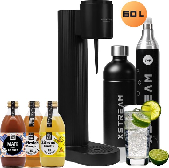 Deze set van JAP bestaat uit een sodamaker, een literfles, een CO2-cilinder en drie siropen om smaak aan je soda te geven. Dit luxe model is vriendelijk in gebruik en bevat alles wat je nodig hebt om direct aan de slag te gaan. Bespaar jaarlijks tot €270 met dit model!
