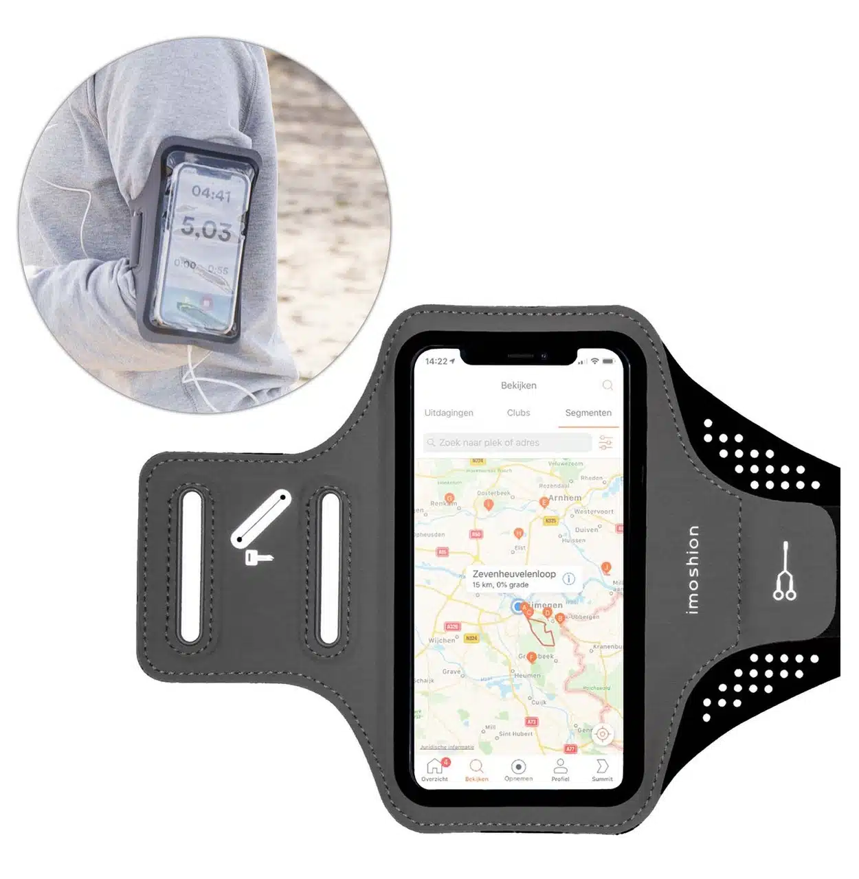 Door een sportarmband te dragen kun je bellen of muziek luisteren en hardlopen tegelijk. De houder draagt je telefoon op een veilige manier, zodat je hem niet zelf vast hoeft te houden.