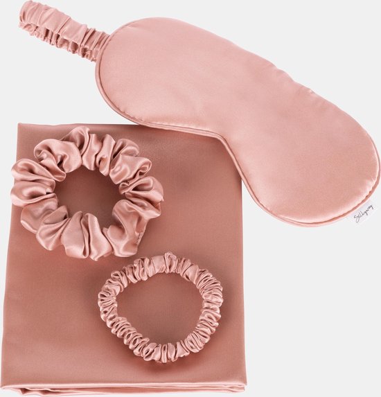 Silkyway is niet alleen onze meest luxe keuze, maar ook de beste set optie! Niet alleen voor de ultieme huid en haar verzorging maar ook voor de beste nachtrust. De scrunchies, het slaapmakser en de overtrek zijn allemaal van 100% moerbij zijde. De set krijgt van zowel van ons als van reviewschrijvers uitstekende beoordelingen. You will be all set voor een heerlijke nachtrust.