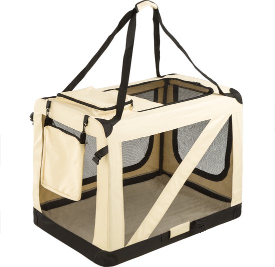 ‘’Het is een fantastische bench en mijn pup ligt er graag in. Omdat deze van stof is incl. een wasbaar matras, geen draadkooi, is het ook wat zachter voor hem. Tevens zitten er heel veel flappen in die open kunnen met vliegengaas waardoor hij koel in de bench kan blijven. Het is ook een stevige kwaliteit (materiaal en ritsen) en licht in gewicht. De bench is zeer eenvoudig in en uit te klappen. Daardoor kan ik hem snel als slaap- en reisbench in de auto gebruiken. De binnenkant is echter zwart en niet beige. Pup en ik zijn er erg tevreden mee!’’
